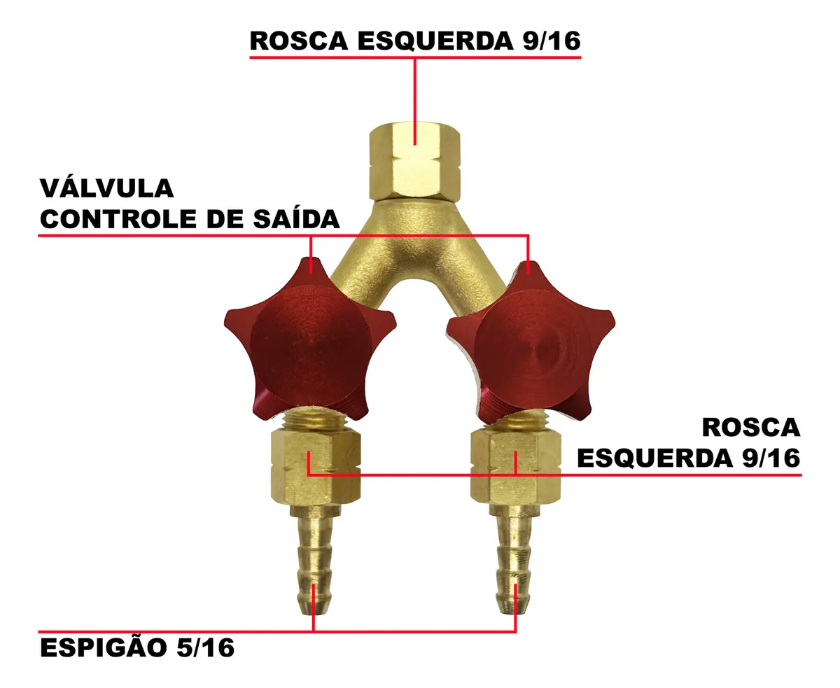 Saída dupla em Y para gás Acetileno